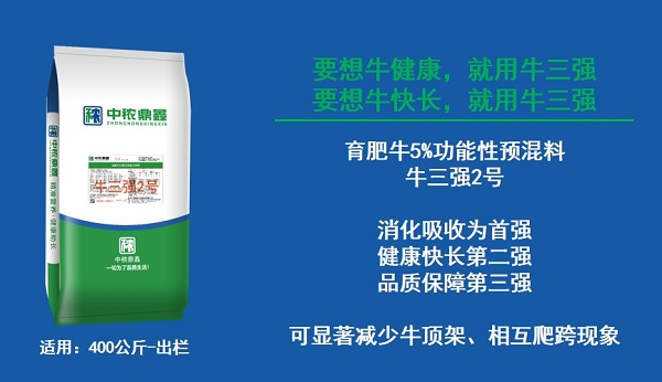 精飼料是育肥牛增膘長肉的關鍵,必須合理搭配飼料。肉牛專用育肥預混料“牛三強2號”配合玉米、豆粕、雜粕或當地其它輔助原料,為大家提供精準營養配方;另外小蘇打根據情況合理添加。料要少添、勤添,每次采食時間11.5小時,育肥期精料日飼喂量按牛體重的1.1%-1.4%左右,但不要讓牛吃的過飽。這樣每次飼喂時牛都保持旺盛的食欲,可以提高飼料的利用率。