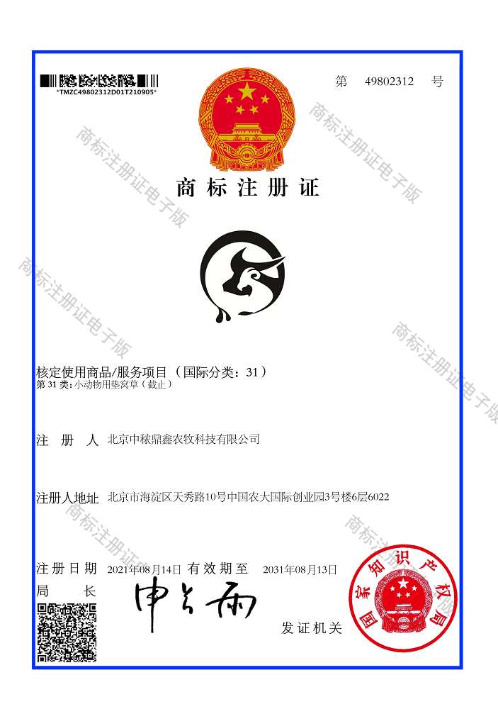 牛羊禾獸藥商標注冊證書